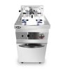 צ’יפסר חשמלי ריצפתי תעשייתי כפול 2*16 ליטר עשוי נירוסטה בנפח של 16×2 ליטר, בעל סלסלת נירוסטה, תא איחסון תחתון, הספק: 5KW+5kw, משקל: 31.4 ק"ג