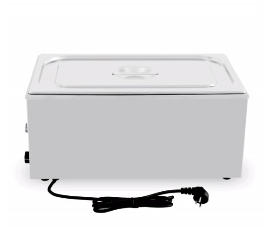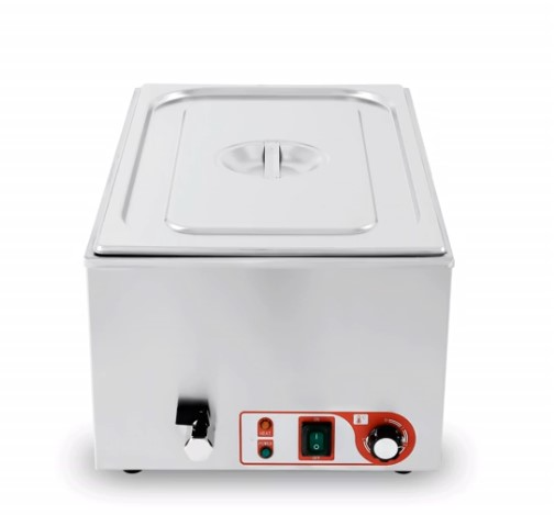 חימום באמצעות אמבט מים המיועד לשמירה על חום של מנות מוכנות לאורך זמן וללא חריכה