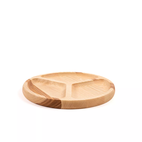 *עיצוב חרצלחת הגשה עם 3 תאים מעץ מלא בקוטר 25 ס"מ.
